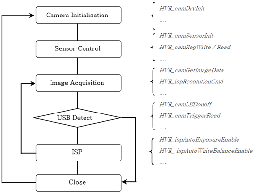 USB드라이버야 당연히 깔아줘야 하는거고… 별도의 SDK를 이용해서 Cam에 접근하게 됩니다.